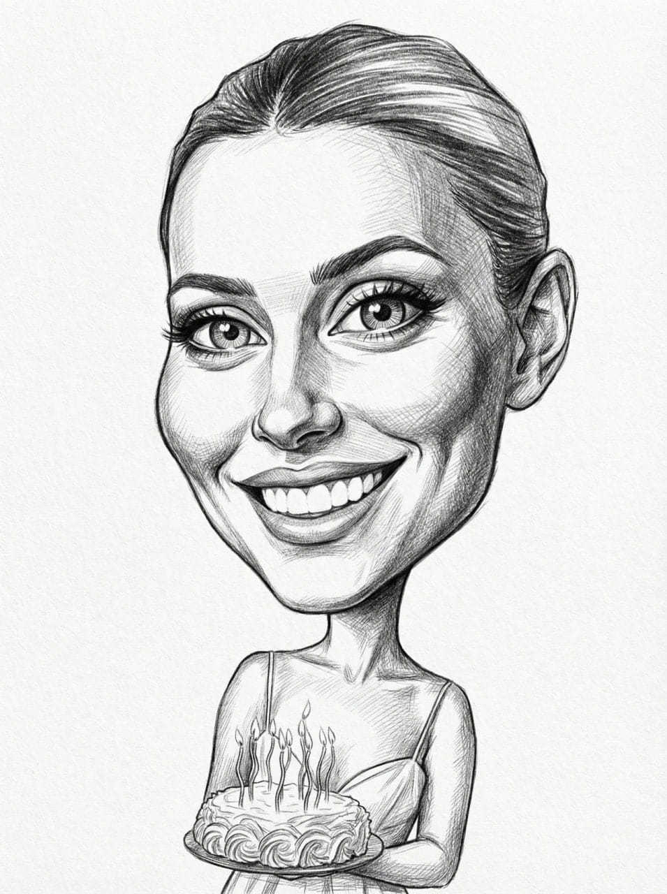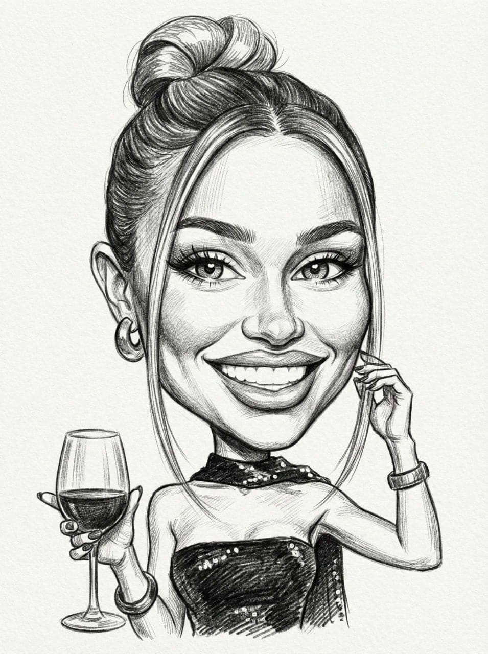 Egyedi, kézzel rajzolt fekete-fehér karikatúra egy személyről. Klasszikus stílus, időtlen megjelenés.